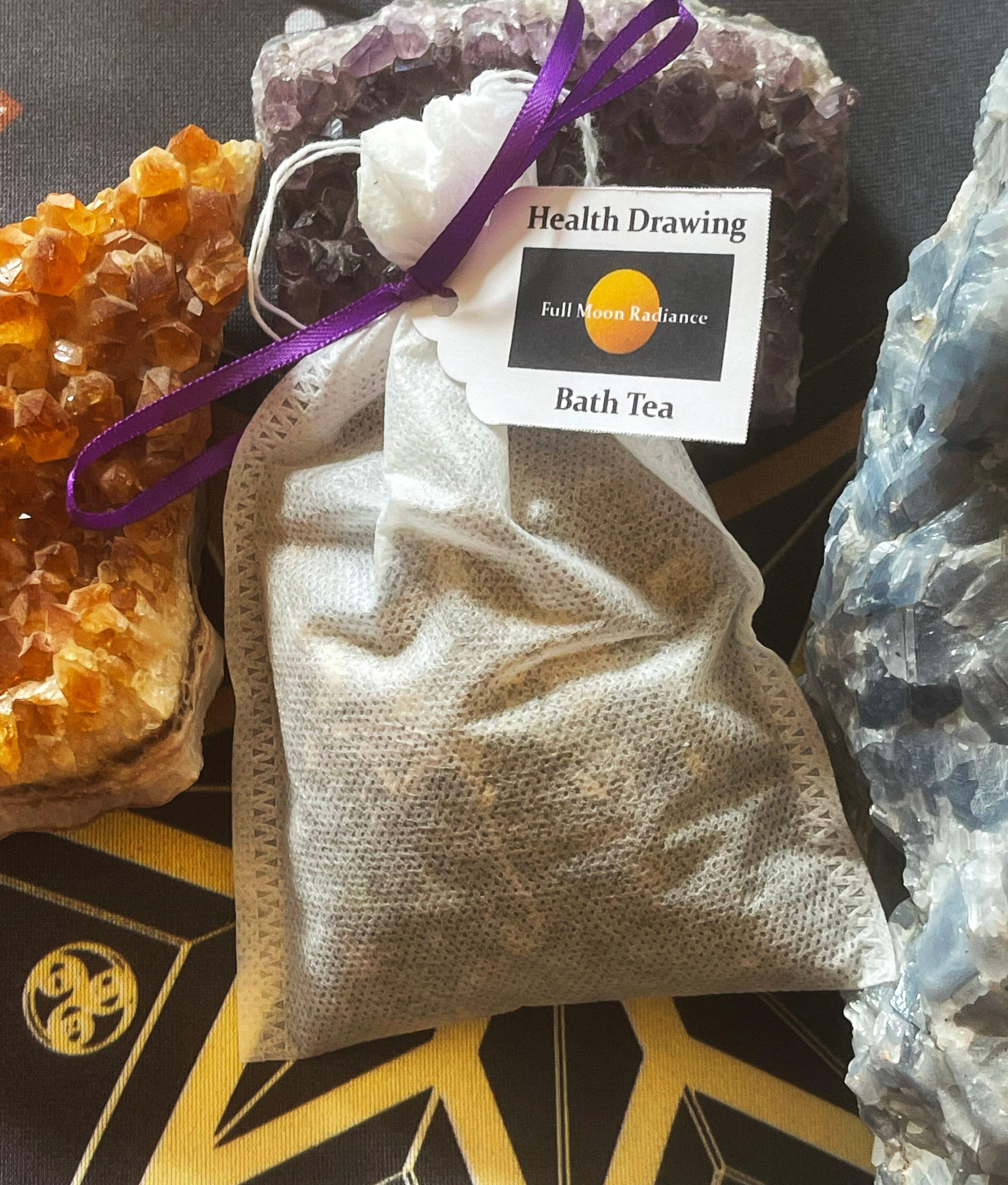 Overall description. Herbs, flowers, and a crystal with a specific intention in 4 x 6 tea bags. Each bag is hand-mixed with love and care, incorporating principles of Wicca, aromatherapy, crystal energy, and color magic. Due to being handmade, please allow for minor differences such as salt grain size, colors, crystals, and floral blends.